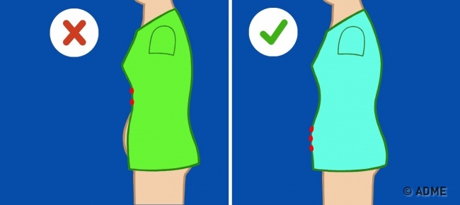 Коли груди не тримає форму, то вона візуально стає доповненням живота і привертає до нього увагу. Бюстгальтер відповідного розміру підніме груди і створить простір між грудьми і животом.