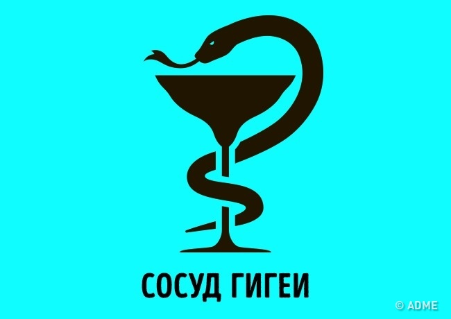 Чаша зі змієм — символ Гігеї, давньогрецької богині здоров'я. Від імені цієї богині стався термін «гігієна».