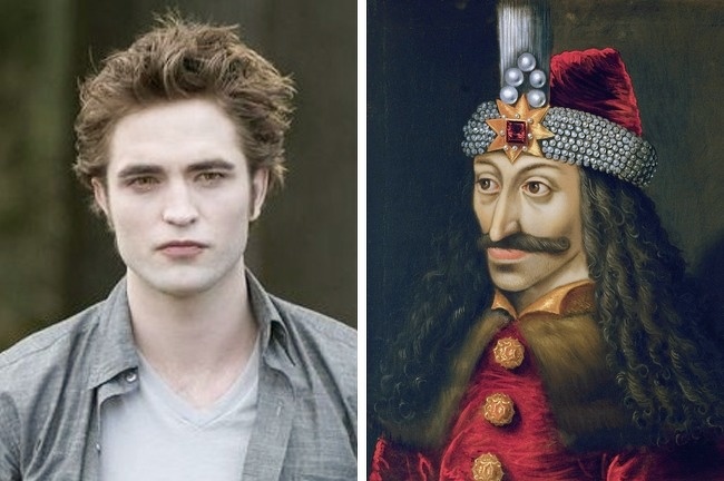 Ось це поворот! У Роберта Паттінсона, який зіграв вампіра Едварда в сазі «Сутінки», дійсно є "вампірська" минуле. Актор полягає в спорідненості з Владом III Цепеша, також відомим як Влад Дракула, — прототипом персонажа роману «Дракула».