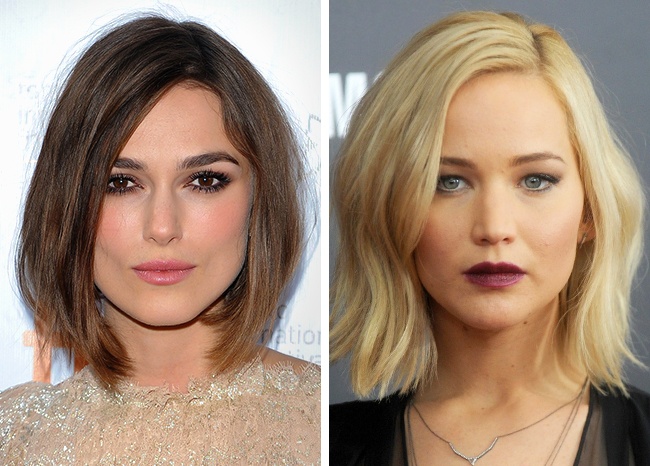 Ще один популярний варіант стрижки — подовжені пасма у особи зачіски на потилиці, як у Кіри Найтлі. Така стрижка підійде власницям тонкого волосся. Акуратний біб довжиною до підборіддя, як у Дженніфер Лоуренс, сподобається тим, хто не любить витрачати багато часу на укладку.