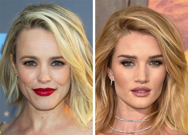 Пасма різної довжини надають волоссю об'єм, вміло приховують недоліки і підкреслюють достоїнства. Цей варіант стрижки як не можна краще підійде дівчатам з кутастими рисами особи або з важким підборіддям у Рейчел Макадамс (ліворуч).