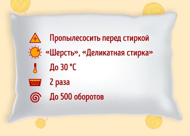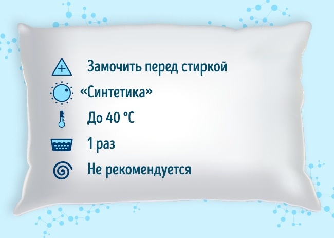 - Не можна прати: подушки з такими органічними наповнювачами, як гречка, рис, кокосове волокно; подушки з ефектом пам'яті, ортопедичні подушки.