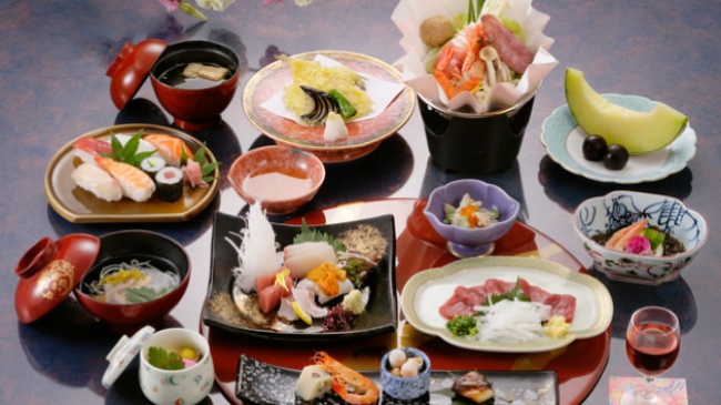 Прийом їжі для японців також нагадує ритуальні дії: все відбувається повільно, їжа нарізане маленькими шматочками, порції дуже невеликі, посуд мініатюрна. Вони прагнуть максимально зберегти природний смак і зовнішній вигляд продуктів, майже не прикрашаючи приготовлену їжу. Не прийнято змішувати різні страви в одній тарілці — для кожного з них є своя. Тарілку ніколи не наповнюють до країв. Погодьтеся, що при такій організації прийому їжі переїдати навряд чи вийде.