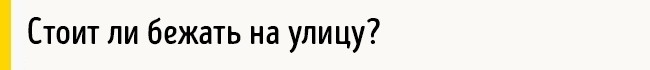 Від першого поштовху до можливого обвалення у вас є 10-20 секунд. Буде чудово, якщо ви скористаєтеся ними, щоб покинути будівлю. Не робіть цього, якщо: