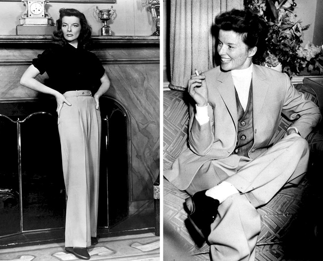 Кетрін Хепберн знаходила натхнення в чоловічих елементах одягу, може, саме завдяки цьому вона мала такий запаморочливий успіх у протилежної статі.