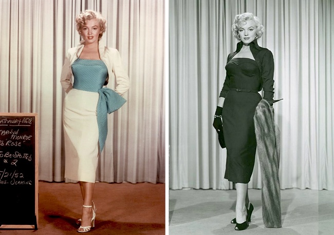 Плаття-футляр вже протягом багатьох років є невід'ємною частиною жіночого гардероба. Мерилін мала особливу пристрасть до суконь подібного крою, і варто відзначити, що в них вона виглядала чудово.