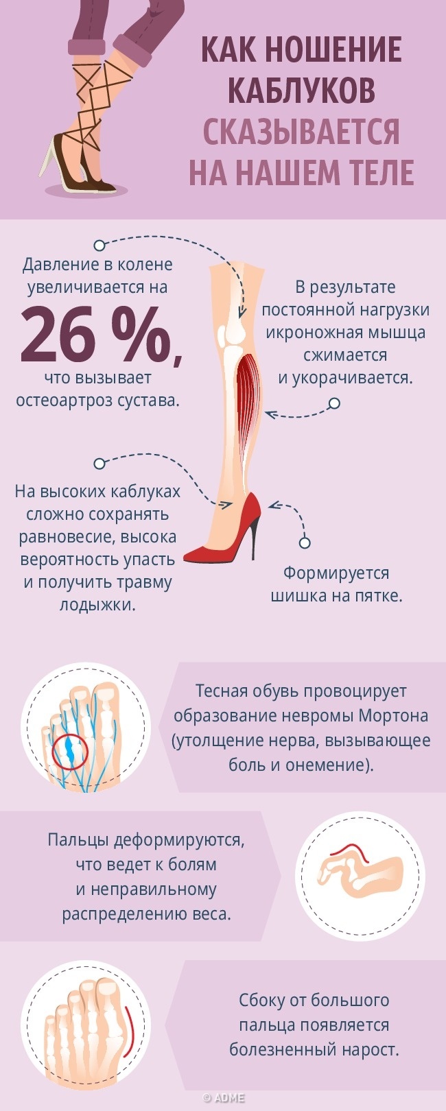 Взуття на підборах красива і ефектна, але якщо носити її занадто часто і приділяти ніг недостатньо уваги, можуть виникнути неприємності у вигляді проблем з поставою і деформацій стопи.