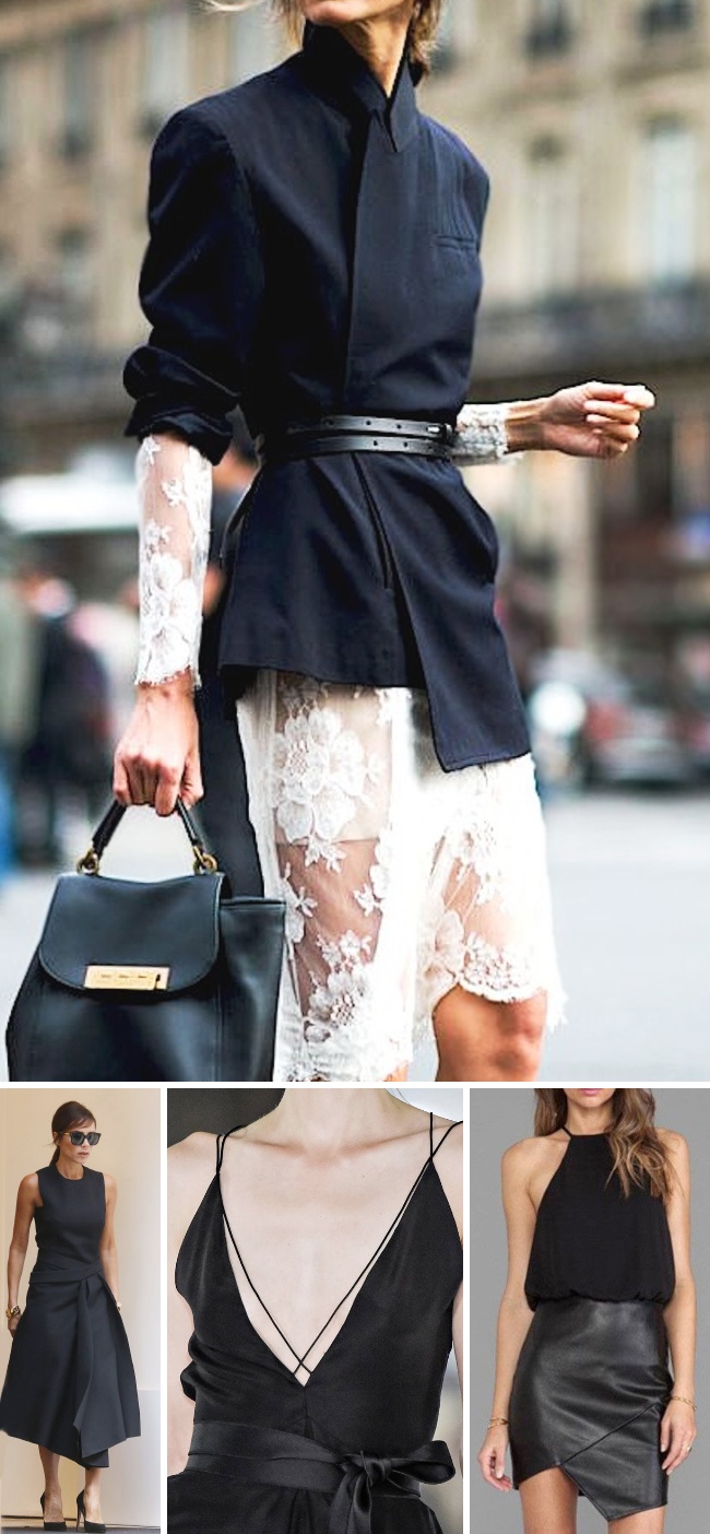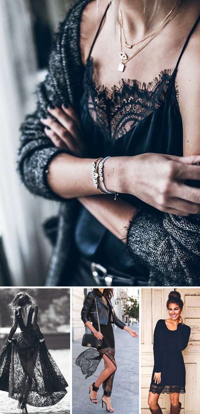 За силою впливу на уяву чорне мереживо не зрівняється ні з одним іншим кольором. Воно допоможе створити ніжний, але при цьому (щоб не пересолодити) злегка готичний образ. Особливо здорово тонке чорне мереживо виглядає у поєднанні з якісною шкірою або трикотажем.