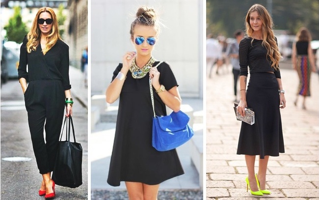 Забудьте мамині поради про те, що чорний можна носити тільки з білим і червоним. До чорного йдуть всі кольори без винятків: ліловий, сірий, синій, зелений і скільки їх ще там є в спектрі.
