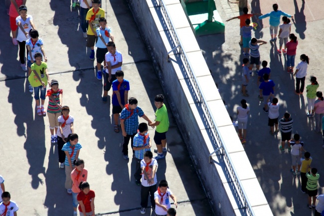 - У китайських школах кожен день роблять зарядку (і не одну) і проводять загальну лінійку. Ранок у школі починається з зарядки, потім лінійка, на якій повідомляють головні новини і піднімають прапор ― шкільний чи державний. Після третього уроку всі діти роблять вправи для розслаблення очей. Під заспокійливу музику і голос диктора в запису школярі натискають на спеціальні точки. Крім ранкової зарядки є зарядка денна ― близько двох годин дня, коли під той же невблаганний динамік школярі в єдиному пориві висипають в коридор (якщо не вистачає місця в класах), починають піднімати руки в сторони і вгору і стрибати.