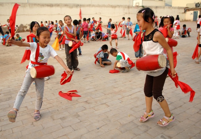 Перерва під час занять з гри на традиційних барабанах, місто Аньсай.