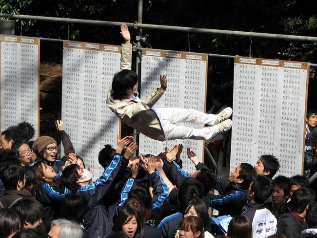 По закінченні старших класів школярі пишуть один тест, який вирішує, чи надійдуть вони у внз чи ні. Випускник може вибрати тільки одну установу, і те, яким воно буде, визначить розмір майбутньої зарплати і рівень життя в цілому. При цьому конкуренція дуже велика: 76% випускників продовжують навчання після школи. Саме тому в Японії популярно такий вислів, як «екзаменаційний пекло».