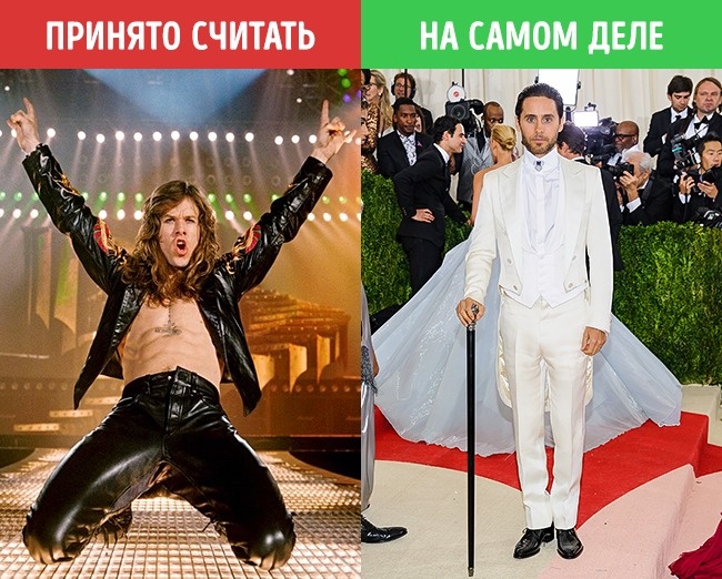 Праворуч — Джаред Літо на офіційному прийомі. Зауважте, не в чорній шкірі, і волосся акуратно причесані.