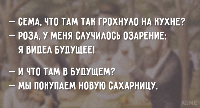 — Знаю, просто, може, хто не в курсі! - — Ой, Мойша, заходьте ще! Без вас потім так добре!