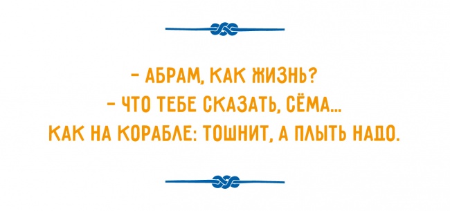 — Я вам більше скажу, він ще й завтрашній! - — Абрам, а шо це Сарочку зовсім не чути?..
