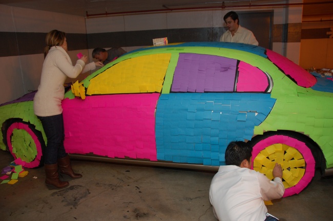 Стікерів знадобиться багато, але результат того вартий. Порада: продумайте заздалегідь кольору, якими будуть хвалитися різні частини машини. Можна навіть викласти напис. Фантазуйте!