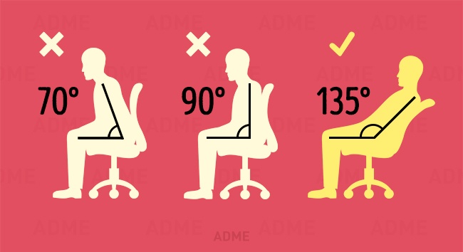 Пам'ятайте, що коли ви сидите під кутом 135 градусів, ваша спина відчуває меншу навантаження.