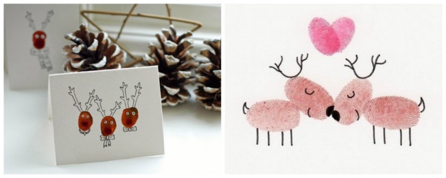 Оленів дуже легко зробити за допомогою відбитків пальців. Просто занурте палець у фарбу, а решта домалюйте. Діти із задоволенням візьмуть участь.