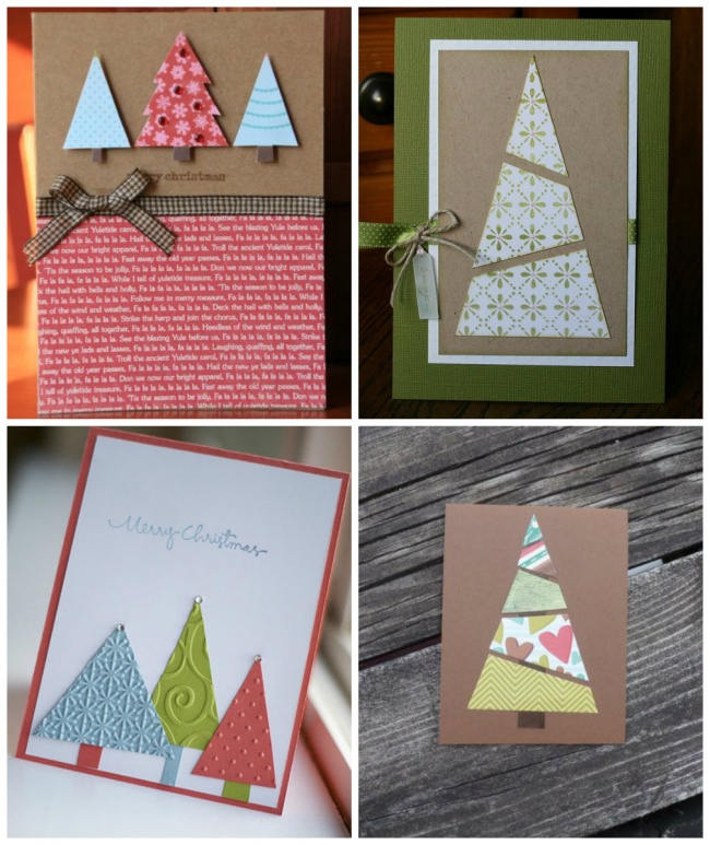 Милі ялинки вийдуть з обрізків шпалер, кольорового паперу, вирізок з модних журналів або спеціального паперу для скрапбукінгу з принтами.