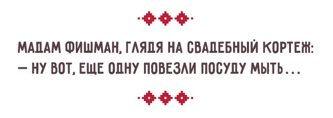 — Я нагадую йому про це кілька разів на рік і кожного разу отримую подарунки! - — Сьома, ти чув, від Рабиновича втекла дружина?