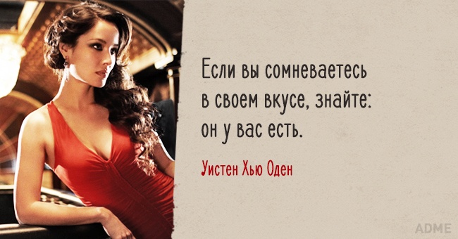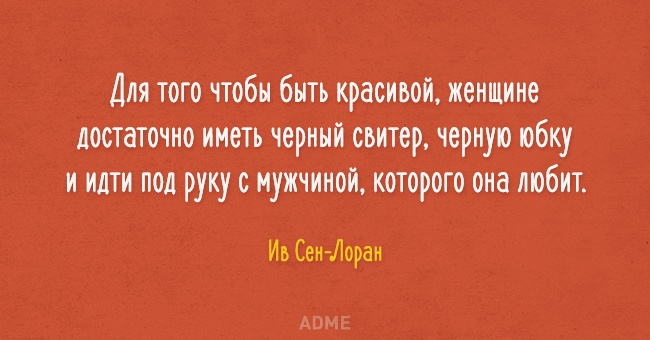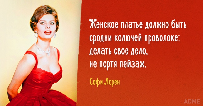 Бути жінкою — мистецтво. І у кожної свої хитрощі, особливий шарм і аромат парфумів. При цьому завжди корисно дізнатися думку людей, чиї імена нерозривно пов'язані з модою, — знаменитих кутюр'є, стильних акторів та інших законодавців індустрії.
