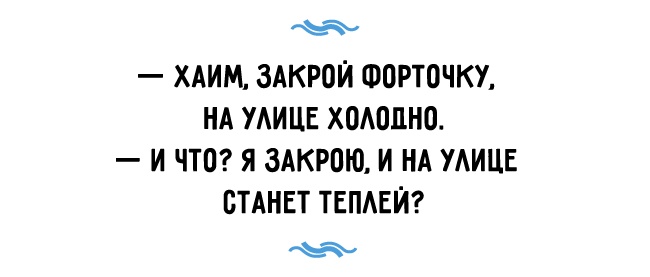 — Таки виходи сміливо, Сарочка: ви з мамою бістро доведете йому, шо він дуже помилявся...