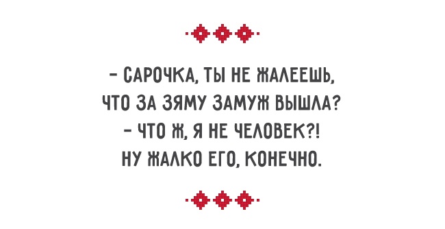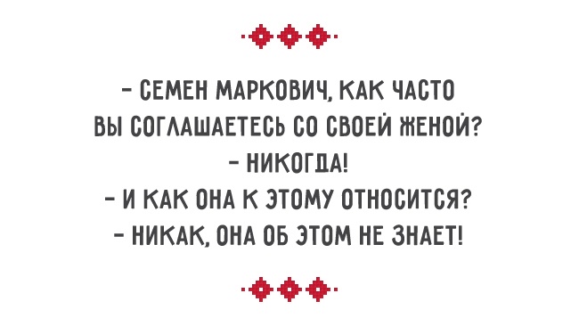 — Як до нашої влади. Трошки боюся, трошки люблю, хочу трошки іншу. - Яша розповідає у колі друзів про вчорашню сварку з дружиною.
