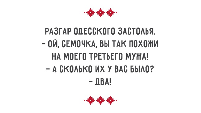Одеса — особливе місто. Про унікальний гумор і знаменитому сленгу його мешканців складають легенди, пишуть книги і знімають фільми. У одеситів є власна думка про все — і стосунки між чоловіком і жінкою не виняток.