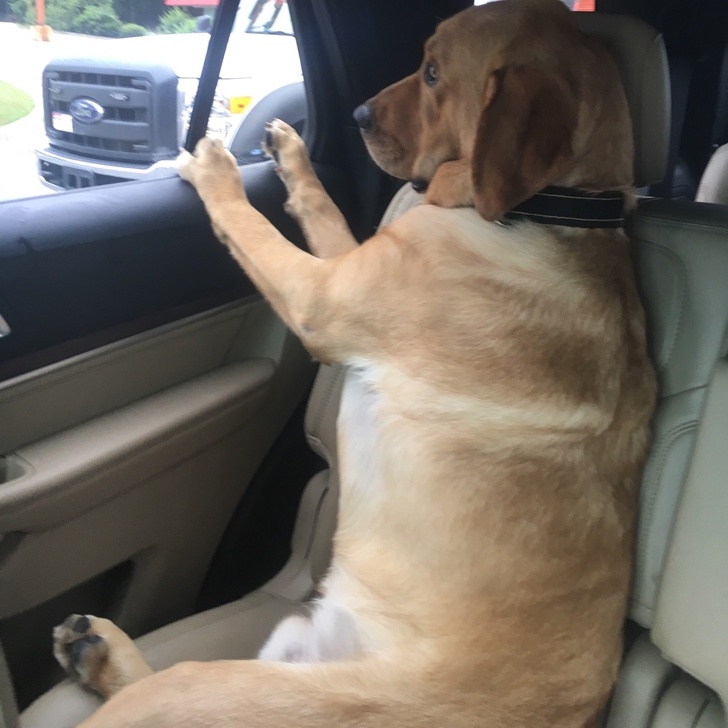 Проходив повз машини, зупиненої перед магазином на узбіччі дороги. Пасажирські вікна були опущені, і дві псини почали невдоволено гавкати на мене. Я у відповідь гримнув на них весело і гучно. Видно, це трохи збентежило їх, тому що вони перестали гавкати. Я знову гавкнул, щоб остаточно затвердити свою перевагу, вказав пальцем на них і сказав: «Я стежу за вами». Після цього я помітив людей на задньому сидінні. © jesslikewoah / Reddit