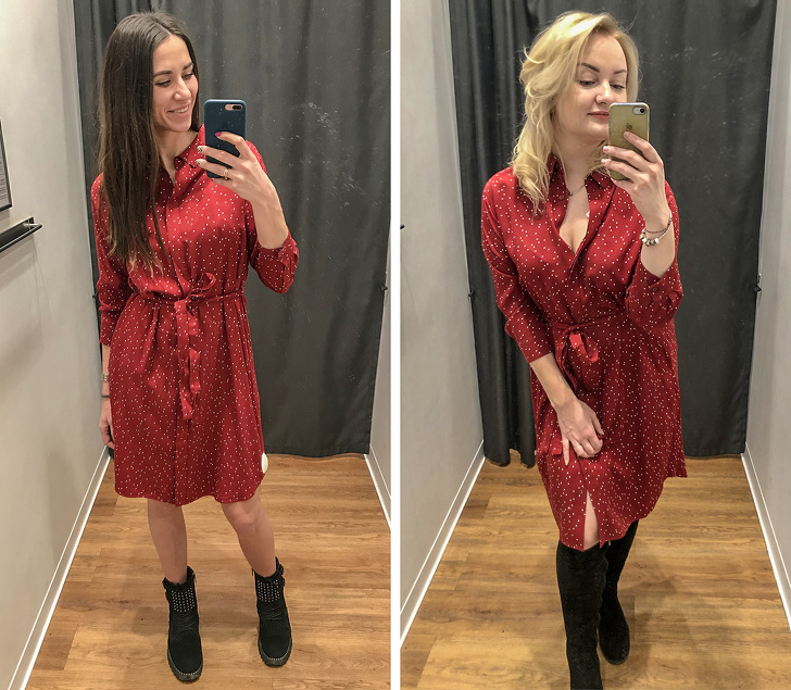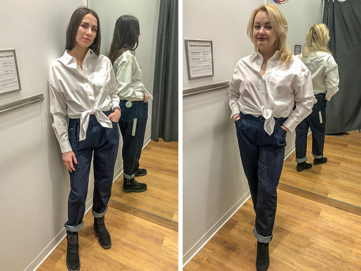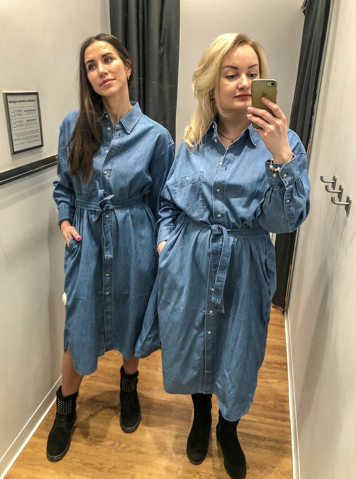 - Однак слідувати всім модним тенденціям небезпечно. Модне джинсове плаття-сорочка в стилі оверсайз не підійшло нам обом.