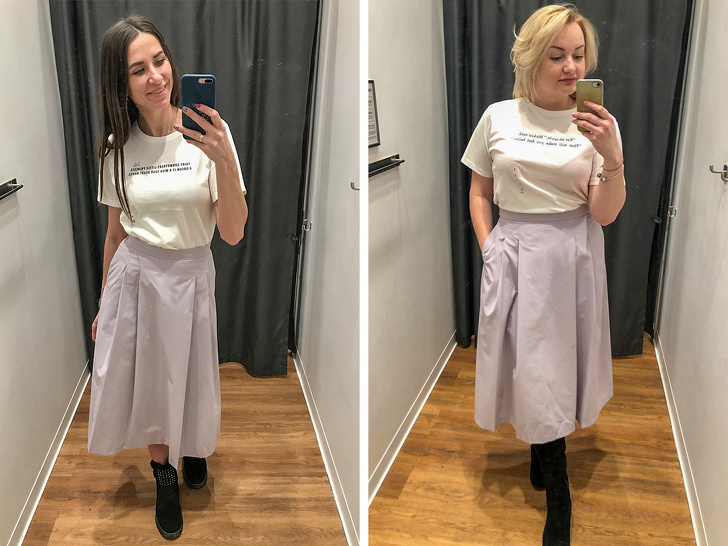 Ми в Social.org.ua вирішили провести експеримент і перевірити, чи можна, дотримуючись порад стилістів по корекції фігури, знайти вдалі однакові образи для дівчат різної комплекції: 42-го та 48-го розмірів.