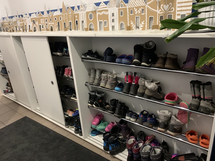 Коридор і стелаж для взуття в приватній школі. Фото з особистого архіву.