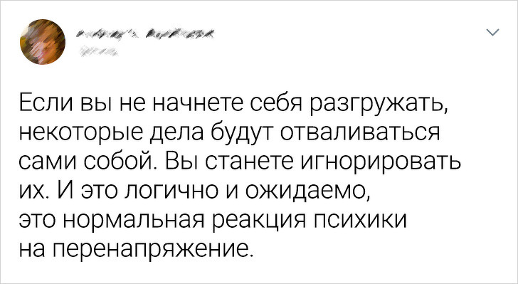 Тому, якщо ви зловили себе на відчутті крайньої втоми і почали розвантажувати себе, вам довго не буде ставати легше. І можливо, спочатку навіть навпаки. Це нормально. Ви довго випалювали свій ресурс. Організму потрібно багато часу на відновлення.
