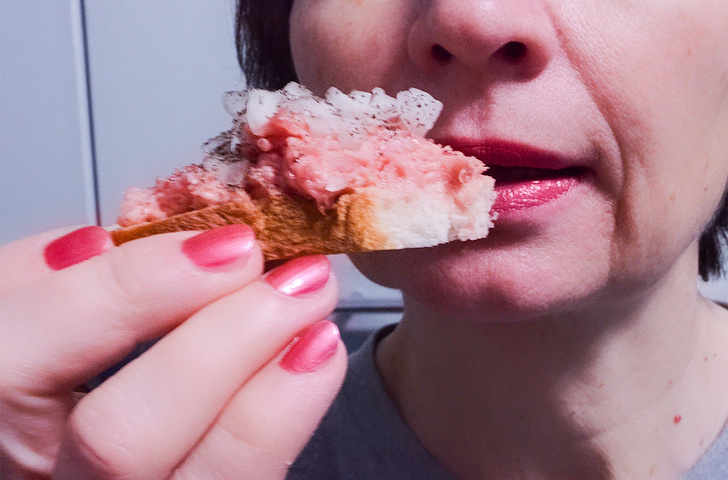 Результат: Маріанна спробувала з'їсти традиційний німецький бутерброд, додавши до фаршу, як годиться, цибуля і перець. Блюдо вона не оцінила: воно здалося позбавленим смаку, а текстура — дивною і неприємною. Але справедливості заради треба відзначити, що проблем з шлунком не було — цього Маріанна побоювалася найбільше.