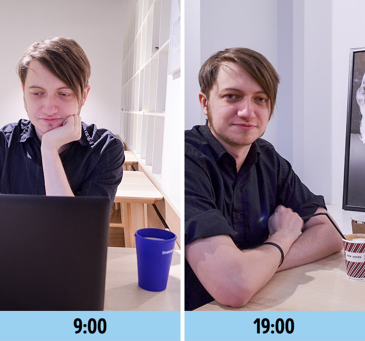 Результат: зазвичай Володимир не п'є каву, але заради експерименту зробив виняток. Цей день він провів у кав'ярні з 9:00 до 20:00 випив у загальній складності 4 склянки кави: флет уайт, капучіно, латте і еспрессо. Після такої кількості Вова не зміг заснути до 3 годин ночі.