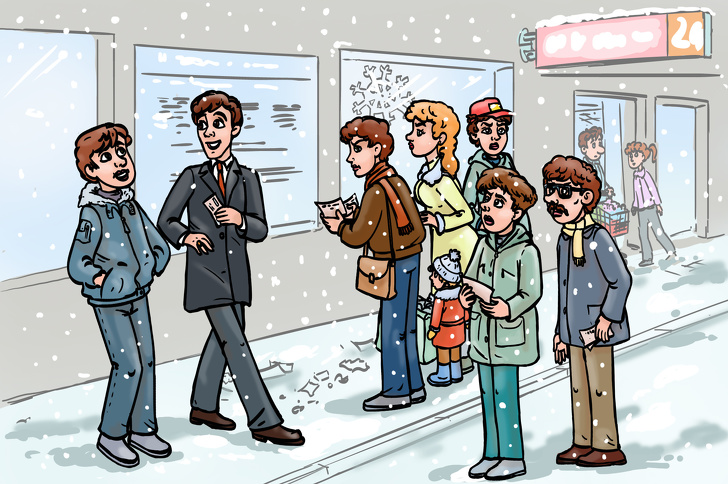 Вирішили сходити в цей магазин взяти коньячку — обмити удачу. На вході вони теж виставили стенд зі списком переможців номерів. Вийшли з магазину, встали, прикуриваем, а поруч зі стендом стоїть жінка середніх років з двома дітьми. Одягнені не те щоб дуже бідно, але видно, що достаток у них на порядок нижче середнього. Поставила сумку поруч, в руках у неї штук 10 квитків, вона вдумливо, ледь ворушачи губами, перевіряє номери. Діти тихі-тихо стоять і не дихаючи стежать за нею. Чуємо, хлопчик дуже тихо, наче боїться злякати удачу, одними губами: