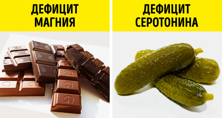 Євгенія часто чує від пацієнтів: "Я не можу без шоколаду, сиру, м'яса". Причиною цього може бути дефіцит деяких речовин. Наприклад: