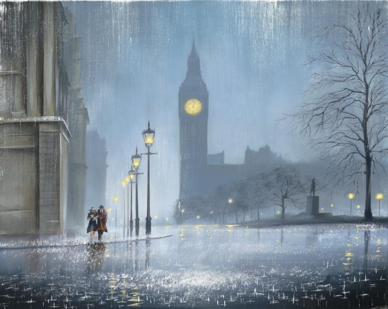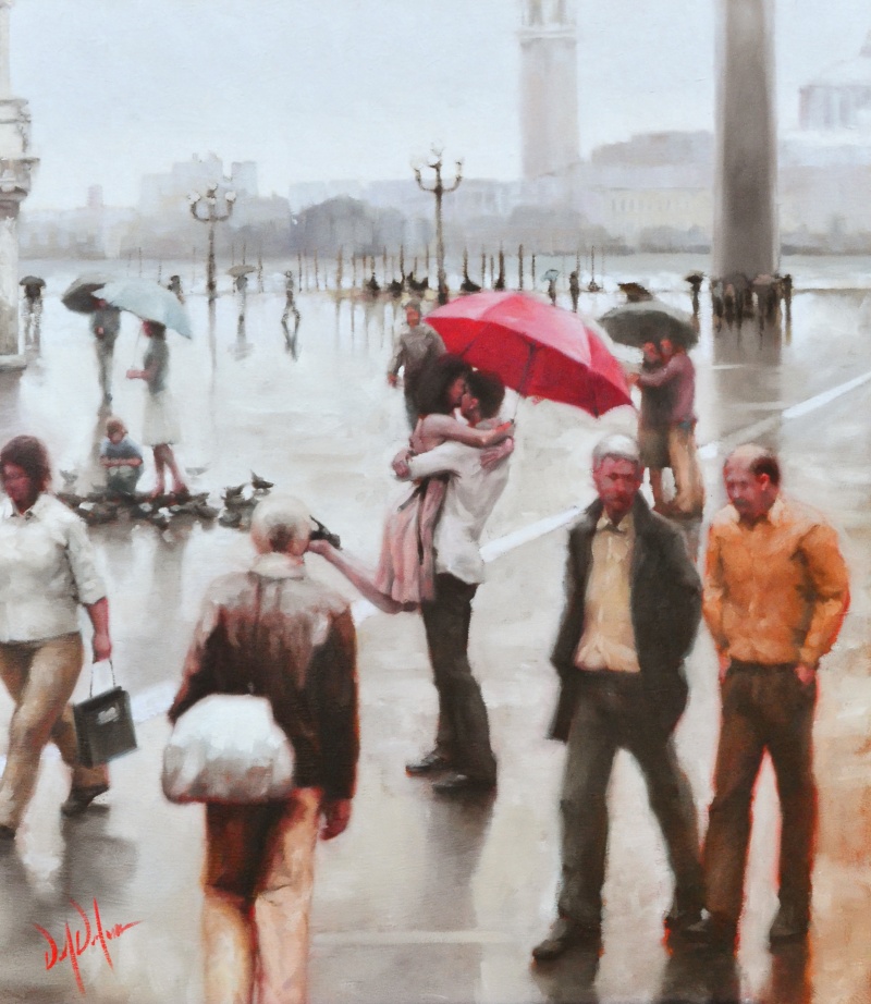 Роботи художника Джеффа Роуланда — це не просто візуальна картинка, в кожній є свій прихований зміст, історія і натхнення. Всі його твори пройняті романтикою, почуттями між закоханими чоловіком і жінкою, які ще більш пронизливо відчуваються на тлі дощових міських пейзажів... Неймовірно атмосферно.