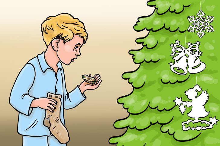 І тільки коли хлопець вже став першокласником, одного разу він все-таки зумів не заснути майже до самого ранку і простежити, яким чудесним чином в шкарпетці з'являється нова цукерка.