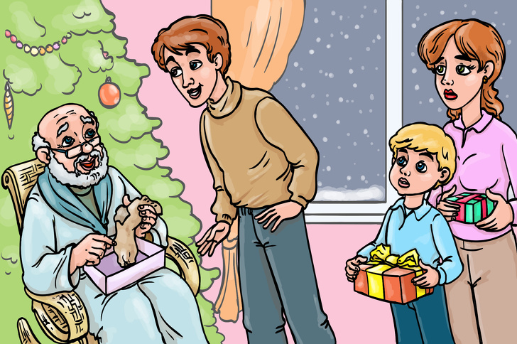 Рік тому сім'я зібралася за новорічним столом, настав час дарувати один одному подарунки. Васіна дружина подарувала дідові дорогу електробритву, про яку той давно мріяв, а правнук підніс свою картину в рамці. Прийшла Васіна чергу, і він без зайвих передмов вручив діду старий, пошарпаний вовняний носок.