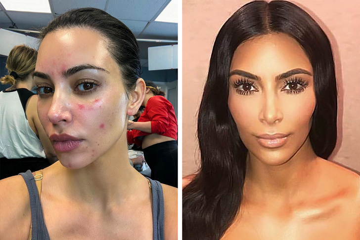 Кім можна назвати справжньою королевою контуринга. У неї від природи пухнасті вії і пухкі губи, яким йде практично будь-який колір.