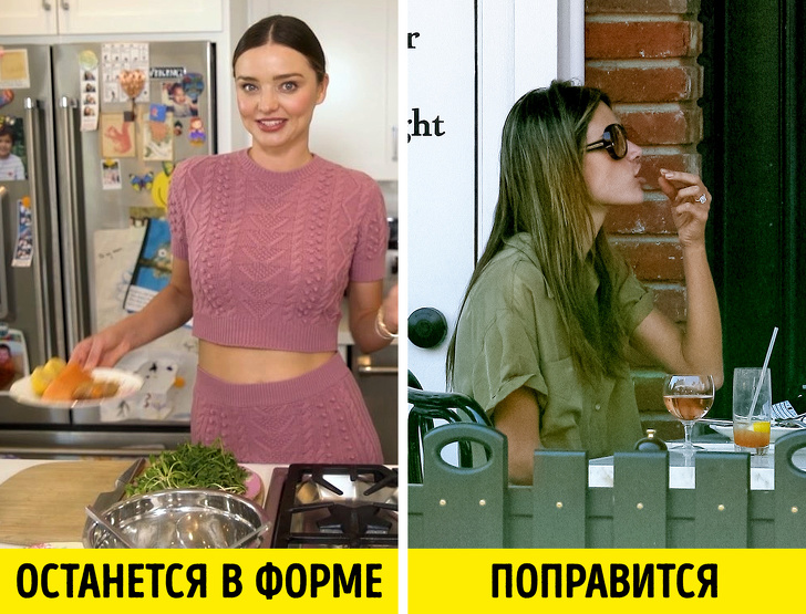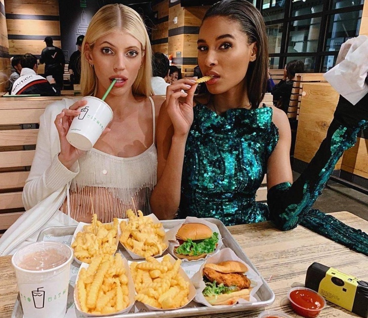 Для знаменитих манекенниць похід в ресторан — це пустощі, а не повсякденність. Так, навіть при перельотах у дівчат завжди з собою своє харчування: вони не купують нічого в кафе на території аеропортів і не їдять їжу, яку пропонують на борту літака.