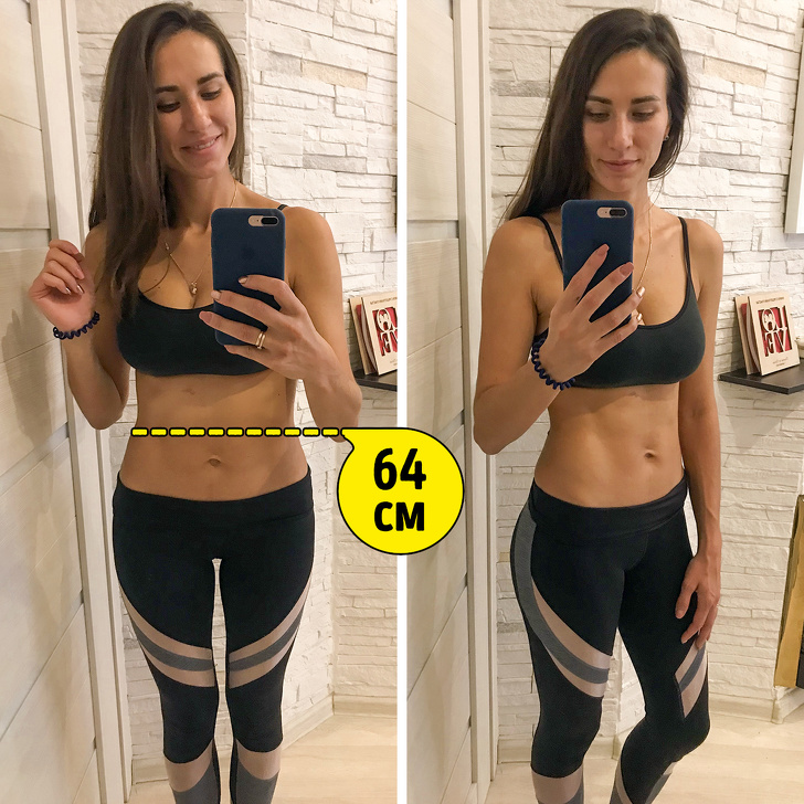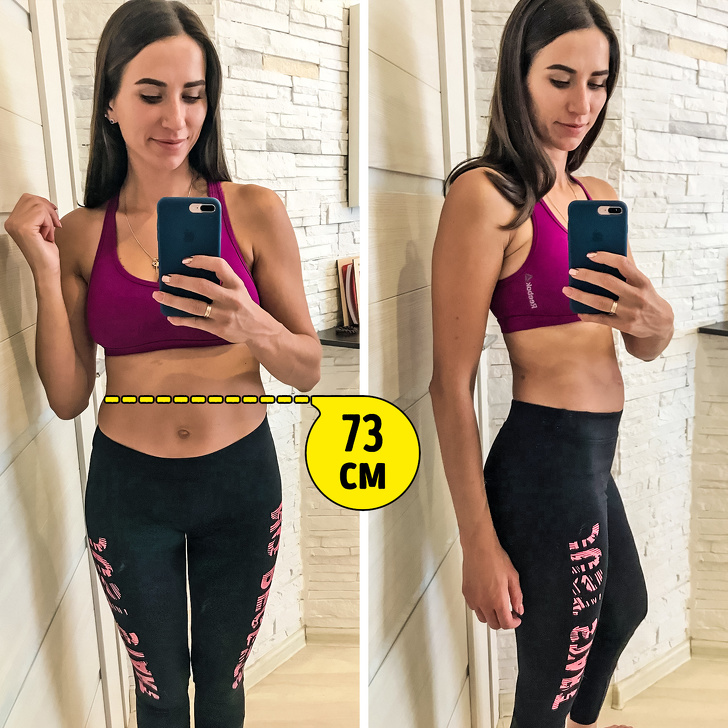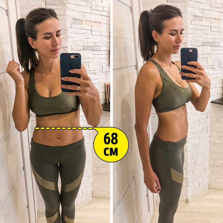 Ноги і стегна стали більш стрункими, з'явився прес і пішов жирок з боків. Що стосується харчування, то я вже спокійно обходжуся без солодкого і мучного. Зараз практично в будь-якому магазині можна знайти альтернативу хлібу — хлібці без дріжджів, цукру та борошна. Їх мінус лише в тому, що вони коштують дорожче.