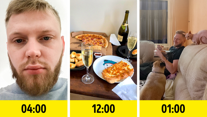 Для чистоти експерименту я добряче набрався напередодні ввечері. Тому необхідність встати о 4 в перший ранок, та ще і працювати при цьому, мене просто вбивала. Ні міцний чай (він ніщо для запеклого кавомана), ні ходіння по квартирі не допомагали. Через півтори години голова прояснилася і зосередитися стало простіше. Опівдні зустрівся з друзями, ми гуляли по місту, відвідували ресторани, а потім закінчили вечір квартирником з гітарою і смачною піцою. Дома опинився в годину ночі.