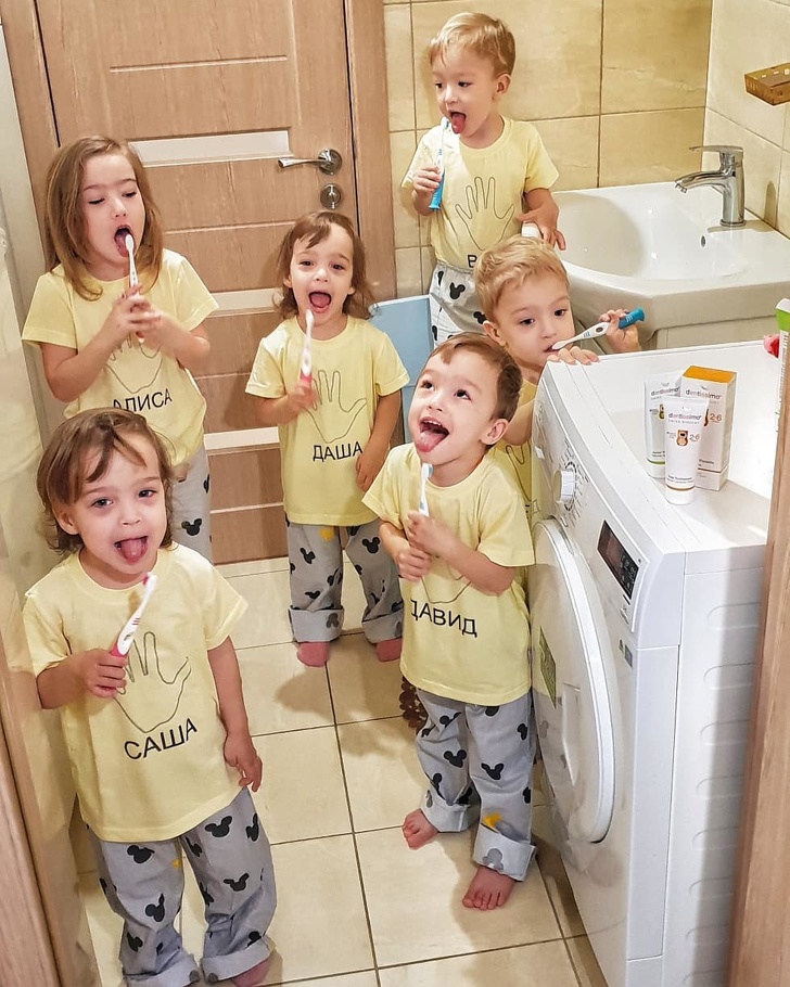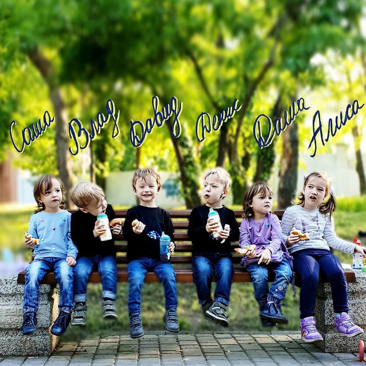 Але досі здалеку і з ходу, буває, плутаю і не називаю своїми іменами. Перший час ми навіть їм кольорові мотузочки чіпляли. Дівчаток розрізняти дуже складно, тому у Даші досі червона стрічка на ручці. Старша дочка Аліса перший час ніби не плутала, поки її не запитали. Вона зізналася, що називає їх, як їй зручно. Конфузи трапляються навіть між самими пятерняшками: нещодавно Саша показувала на Дениса і стверджувала, що це Влад, а Денис там! Може, навмисне?