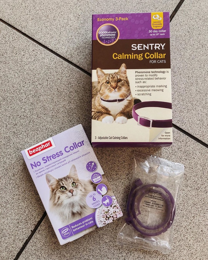 - Як ліки. Заспокійливі нашийники містять феромон (аналогічний виробляють кішки для заспокоєння кошенят) або просочені екстрактами трав — лаванди, м'яти. Такі нашийники допомагають котам відчувати себе спокійніше в стресових ситуаціях, таких як переїзд, ремонт, поява в родині нового тварини, грім, блискавка, салюти, відвідування ветклініки і т. д.