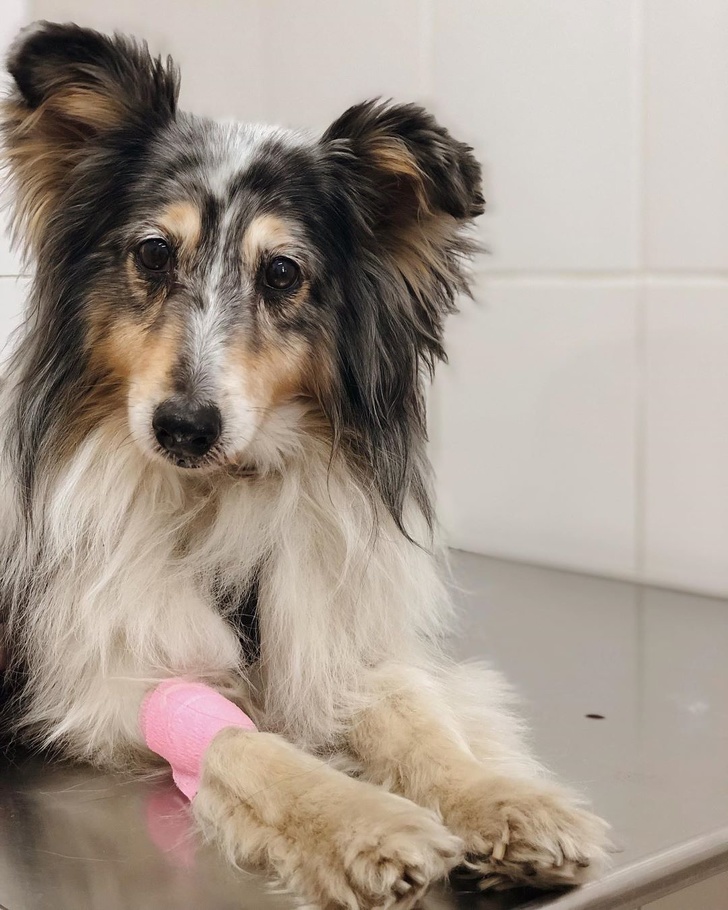 - Не дозволяйте тварині вилизувати рану, постійно носіть захисний комір. Навіть вночі, навіть якщо улюбленець під вашим суворим наглядом. Якщо рана на подушечці лапи у собаки — на прогулянку потрібно надягати захисний носок (придбати можна у ветаптеці, зоомаге або пошити з цупкої тканини самостійно).