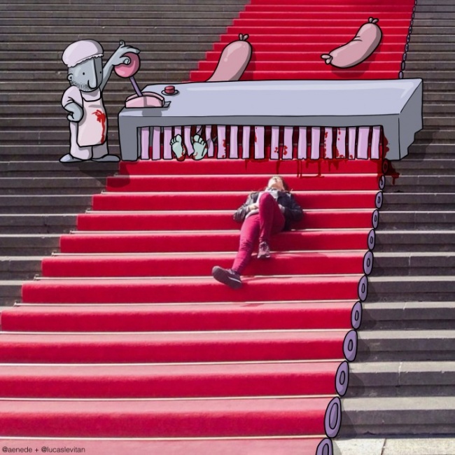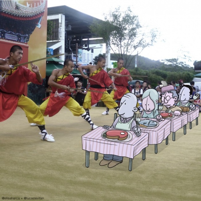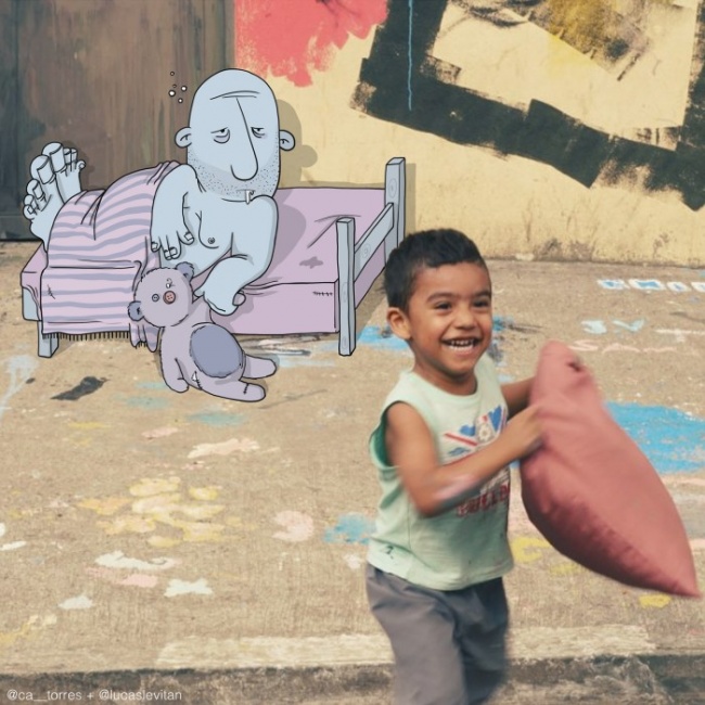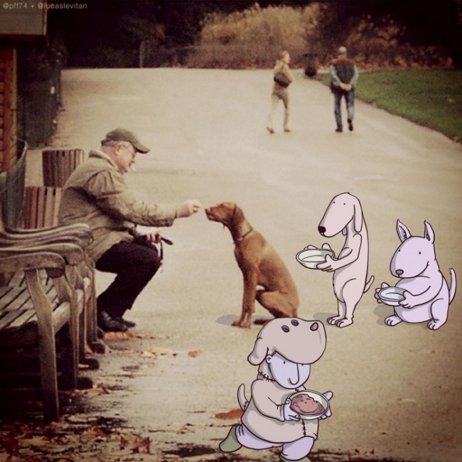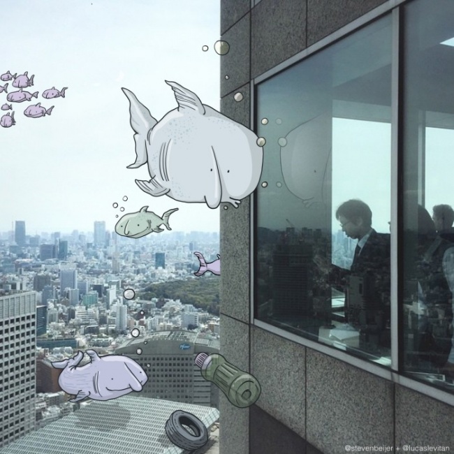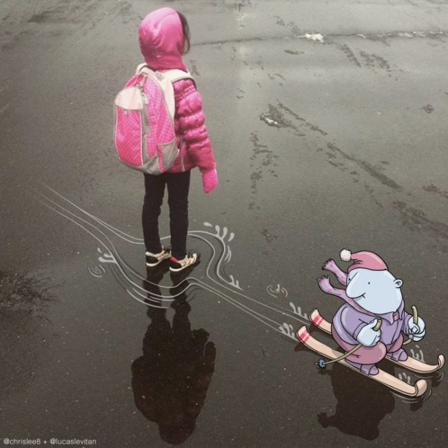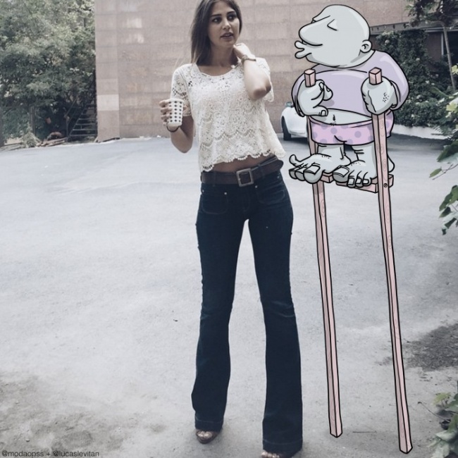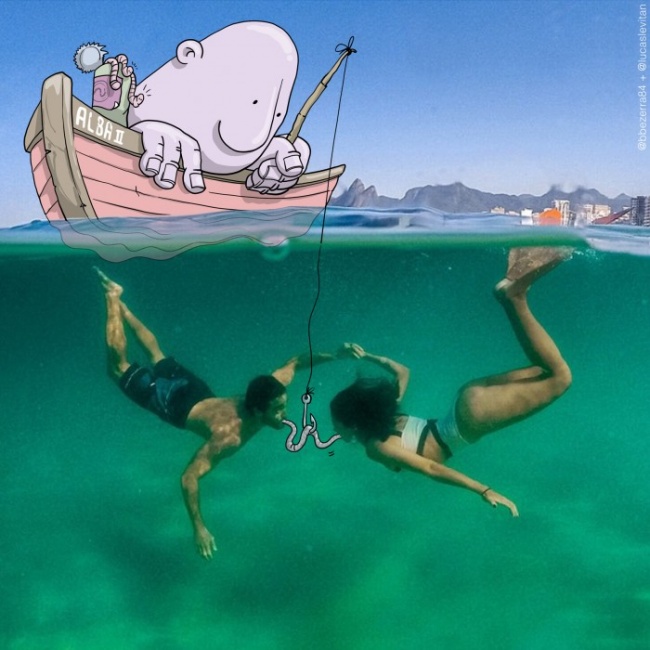 У бразильського художника Лукаса Левітана є цікаве захоплення: він бере випадкові фотографії з инстаграма і доповнює їх своїми малюнками. У підсумку знімок набуває абсолютно новий сенс.