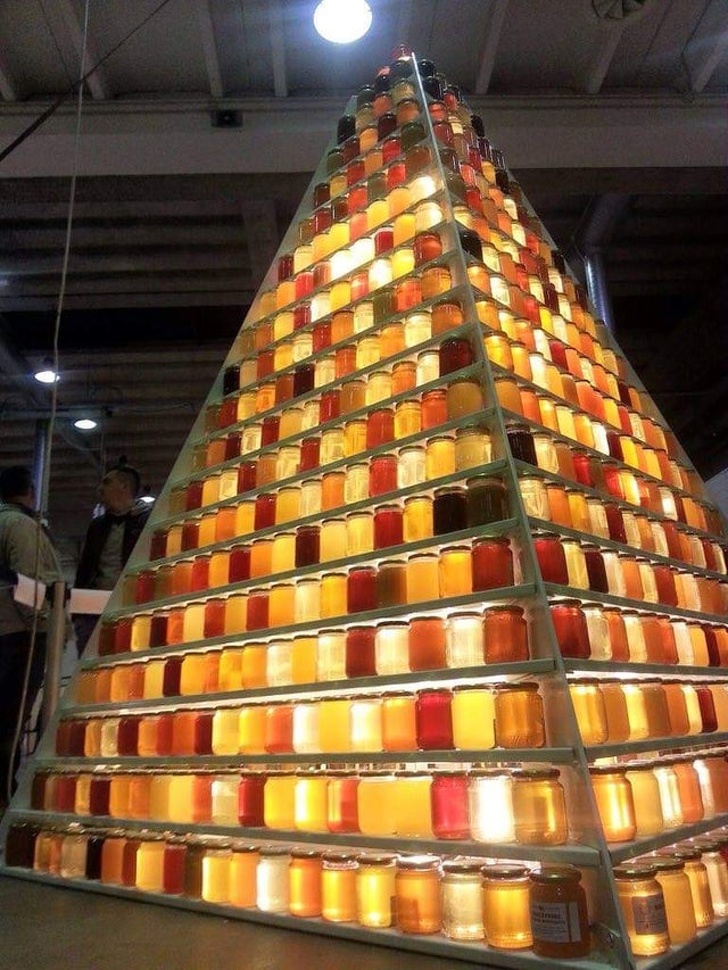Лондонські бджолярі побудували піраміду з банок з медом, щоб показати все багатство його відтінків.